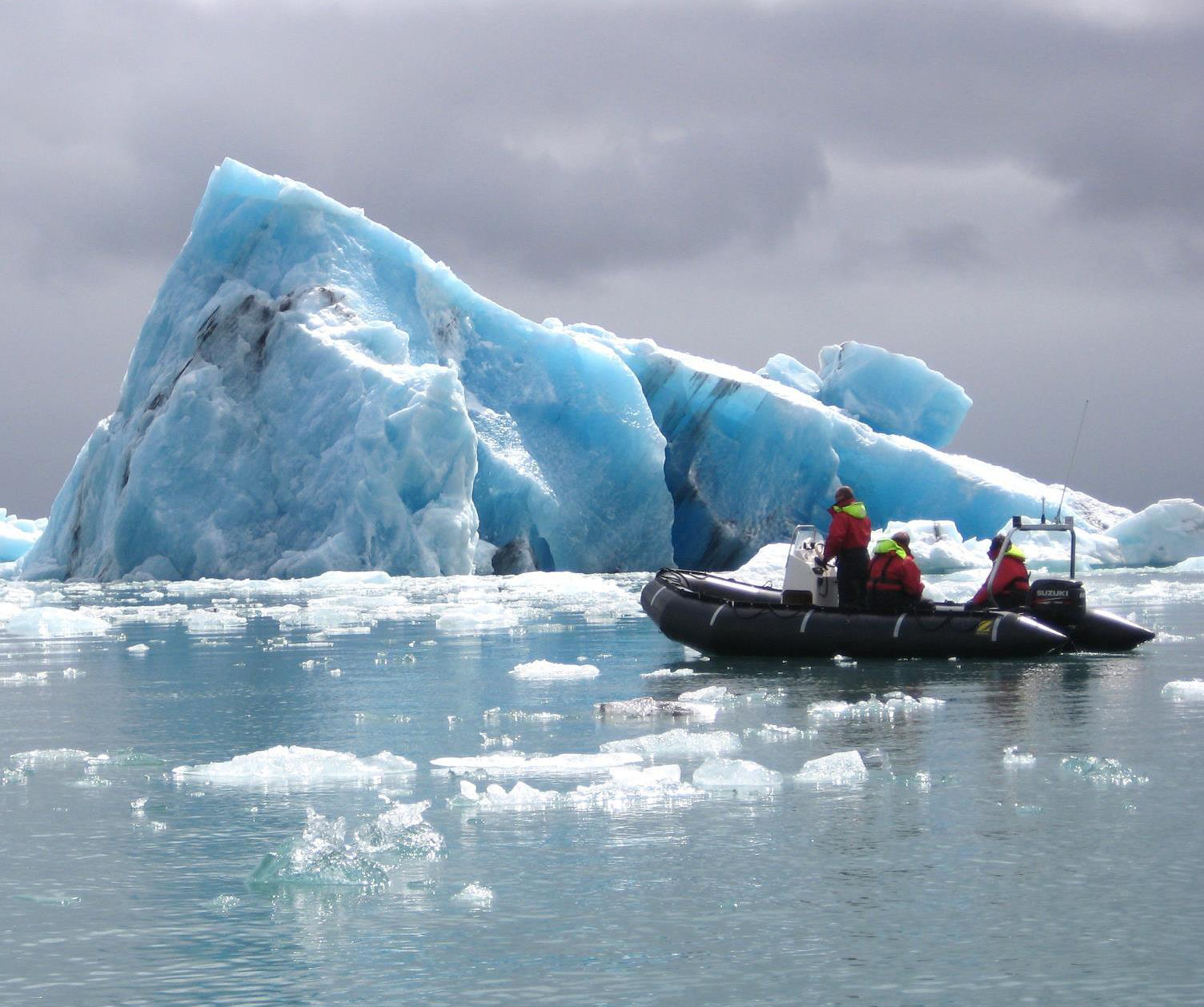 Join us for an adventure among sculpture-like icebergs and sail up to the very secluded glacier wall of Jökulsárlón, where at times we witness complete serenity and at times the captivating view of a breaking glacier (calving). An extraordinary place, only few have seen.